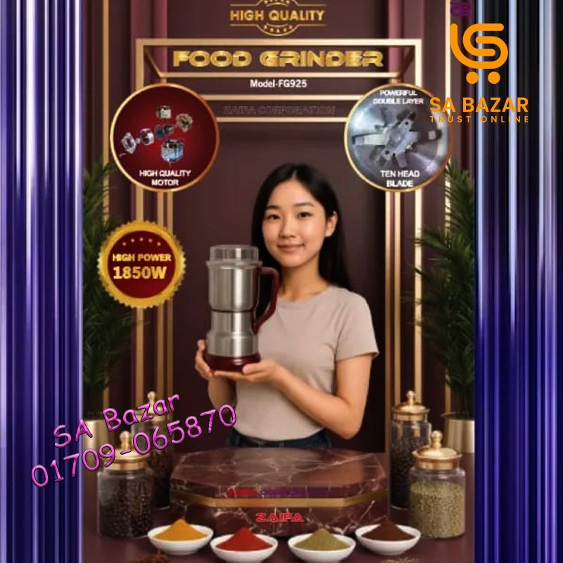 নিয়ে আসুন নতুন প্রজন্মের Food Grinder 1850W, যা হালকা, নির্ভরযোগ্য এবং নিরাপদ ব্যবহারের জন্য আদর্শ।